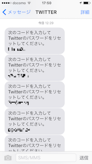 ブロックしてからしばらくして、TwitterからSMSが届いた。パスワードリセットコード(パスワードを忘れたときにリセットするためのコード)が続けて10通も。ピンポンダッシュの嫌がらせみたいなものかと。子どもじみてるなあ。