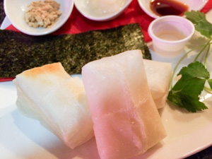 お正月限定メニューのお餅があったので、それを注文する。きな粉、大根おろし、醤油、海苔、ハチミツのトッピングで、おもちは3コ。おい足りないぞ(聞いたら『おなかにちょうどいい3コにした』らしい)。さーやさんオススメのハチミツは意外にお餅に合ってた。