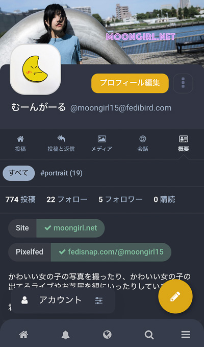 アカウント:むーんがーる(@moongirl15@fedibird.com)