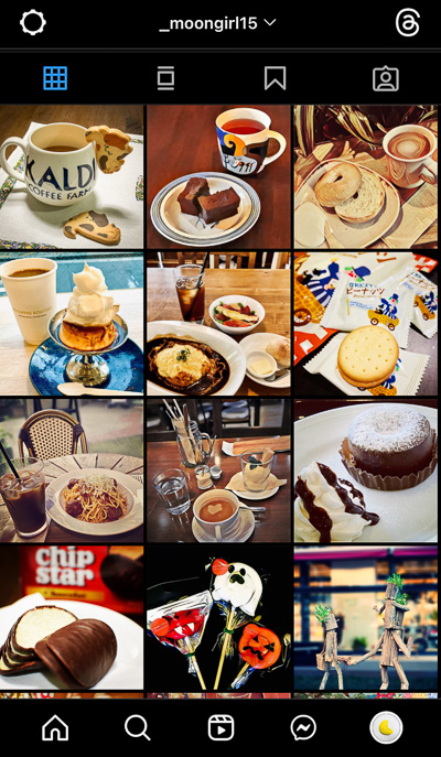 元々はじめたきっかけが「Instagramしかやってないモデルとの連絡用」だったから、その感覚はそのまんま。ふざけて女子っぽい投稿だけにしたのもそのまんま。お菓子ばっかりである。